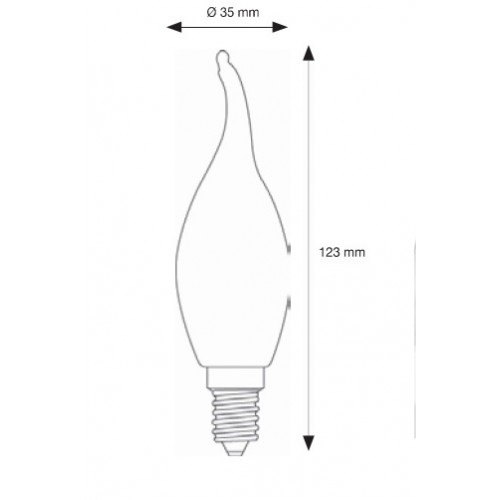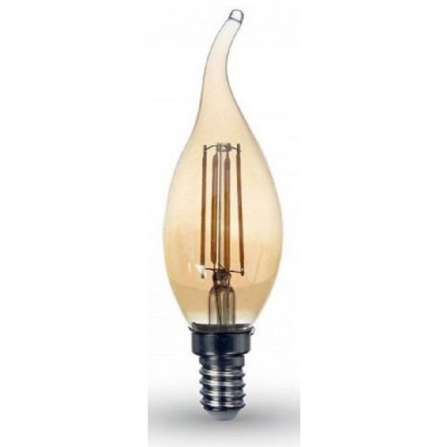 Bombilla LED vela lisa Gold Flama E14 4W Filamento 1800ºK VLGE144W18FFLAMA FILAMENTO, de alta potencia lumínica con un CRI mayor de 80, un factor de potencia del 0,92 y una duración de más 50.000 horas.