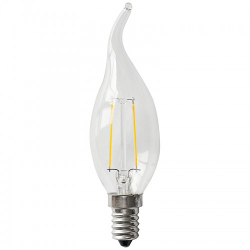 Bombilla LED vela lisa Clara Flama E14 4W 2700ºK VLCE144W27FFLAMA FILAMENTO, de alta potencia lumínica con un CRI mayor de 80, un factor de potencia del 0,92 y una duración de más 50.000 horas. Ahorra más de un 60% respecto de las luminarias de bajo consumo y con un 10% más de luminosidad. Encendido instantáneo, no parpadea, no hace ruido.  Son ecológicas porque no usan materiales contaminantes y reducen las emisiones de CO2 a la atmósfera. La solución ideal para lugares donde la luminaria está muchas horas encendida como parkings, ascensores, oficinas, tiendas, hospitales, etc. Para apliques, luminarias empotrar o de pie y cualquier aparato donde por las dimensiones de la lámpara se pueda instalar.