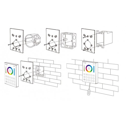 Mando Pared Controlador RF Monocolor, RGB, RGBW, CCT, RGB+CCT. hasta 8 zonas