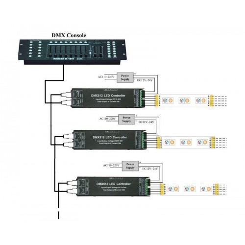 Controlador Decodificador DMX 512 EcoDecoder 4 canales DC12-24v 4A por canal, desde 19,90€