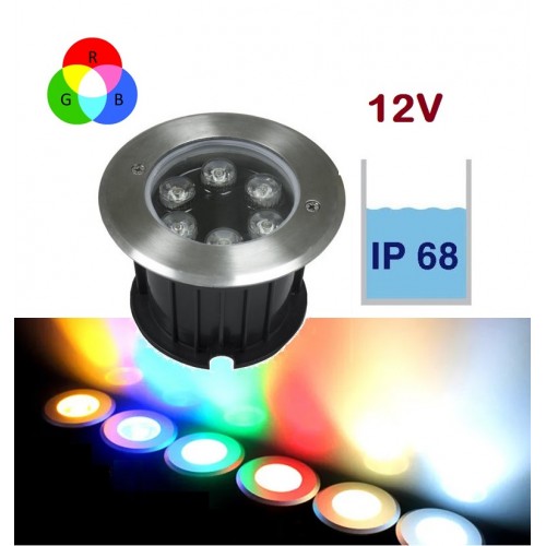 Foco LED exterior IP68 empotrar 6W 12V RGB, Ø100x76mm