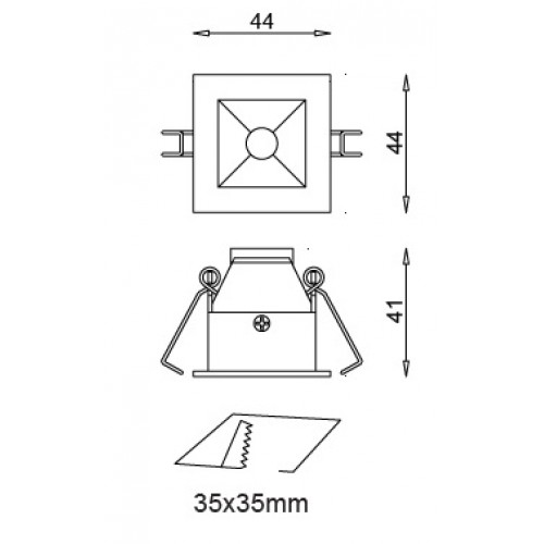 Dimensiones 44*44*41 ±1mm, corte: 35*35mm