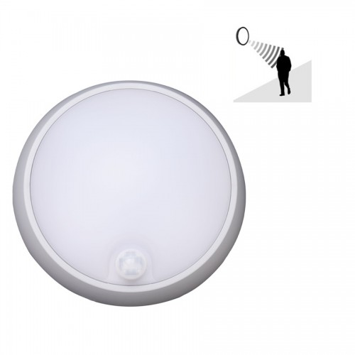 Plafón ó Aplique LED de Superficie redondo Ø170x57mm Gris 8W IP54 con Sensor PFSRG8WIP54DM, de iluminación directa con difusor opal está diseñada para aplicaciones de iluminación general tanto comercial como doméstica. El ahorro energético de estas lámparas comparadas con sistemas tradicionales de iluminación es de hasta el 90%.