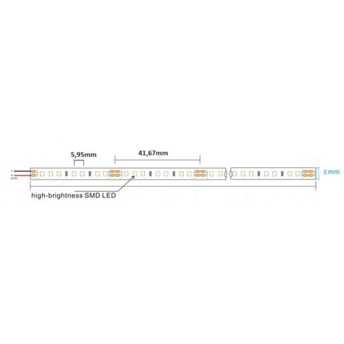Tira LED Flexible 24V 10W/mt estrecha 5mm 168 Led/mt SMD 2835 IP20 Serie Profesional, Venta por metros de 1 a 20mts a medida de su necesidad. Se suministra en tirada continua hasta 20mts TLF102835P24M. Tira LED flexibles serie Profesional son de máxima calidad (High Quality) y se presentan con configuraciones de distintas medidas y prestaciones. Modelos estándar o estancos con distintos tipos de leds SMD como unidad de luz principal, en tipo 3528 y 5050, 2835, 3014 y 5630. Su flexibilidad y la dotación de accesorios permiten su aplicación en multitud de diseños de iluminación decorativa de bajo consumo con un gran ahorro de energía El formato de nuestras tiras de LED, viene en rollos de LED de 5 metros pudiéndose cortar en múltiplos de 5 cm, de ese modo se consigue acoplarlo en cualquier proyecto a medida. Las tiras de LED autoadhesiva, y presente diferentes grados de protección. A la hora de utilizar esta tira de LED, hay que tener en cuenta su intensidad lumínica, por lo que tendremos que poner un objeto cercano en el que proyecte la luz. Si su fin es como señalización, (delimitar pasillo, resaltar zonas de paso...) no es necesario buscar un objeto donde proyectar la luz.