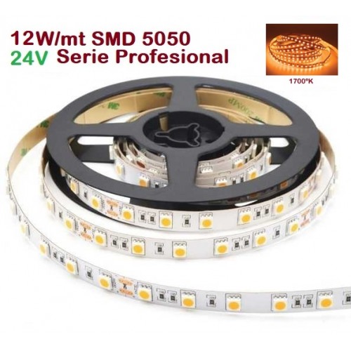 Tira LED Flexible 24V 12W/mt 60 Led/mt SMD 5050 IP20 1700ºK Serie Profesional, Venta por metros