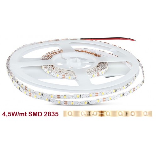 Tira LED 5 mts Flexible 23W 300 Led SMD 2835 IP20 TLF232835E 4,6W/mt 60 Led/m. Tira LED flexibles y presentan con configuraciones de distintas medidas y prestaciones. Este tipo de tira de LED trabaja con fuente de alimentación de 12V en corriente continua. Su flexibilidad y la dotación de accesorios permiten su aplicación en multitud de diseños de iluminación decorativa de bajo consumo con un gran ahorro de energía. Las tiras de LED es autoadhesiva y presente diferentes grados de protección. A la hora de utilizar esta tira de LED, hay que tener en cuenta su intensidad lumínica, por lo que tendremos que poner un objeto cercano en el que proyecte la luz. Si su fin es como señalización, (delimitar pasillo, resaltar zonas de paso,…) no es necesario buscar un objeto donde proyectar la luz.